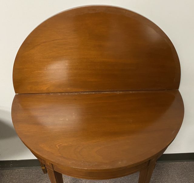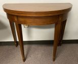 Federal style game table, mahogany, lift twist top, half moon, light wear. 30" h., 36" w., 18" d. Federal style game table, mahogany, lift twist top, half moon, light wear. 30" h., 36" w., 18" d.