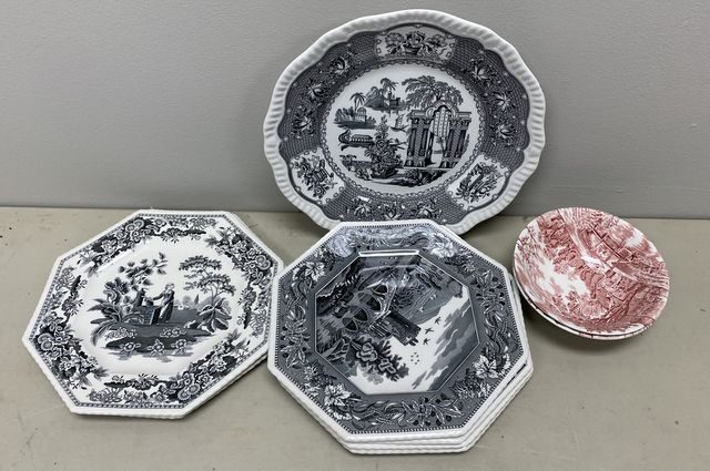 Spode Archive Sutherland Collection Plates, octogen plates, charger, and bowl. Spode Archive Sutherland Collection Plates, octogen plates, charger, and bowl.