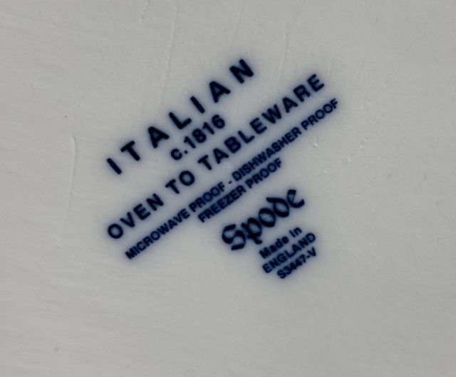 Italian Spode Tableware, porcelain, blue and white, covered pots, and canister. Italian Spode Tableware, porcelain, blue and white, covered pots, and canister.