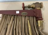 Vintage Wirt & Knox Royal Fire Hose and Rack, wall mount, with original canvas hose and brass nozzle, good condition. Vintage Wirt & Knox Royal Fire Hose and Rack, wall mount, with original canvas hose and brass nozzle, good condition.