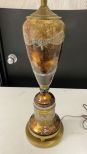 Italian Style Glass Vase Style Lamp, hand painted, footed on base, size 16, new shade, 32"h. Italian Style Glass Vase Style Lamp, hand painted, footed on base, size 16, new shade, 32"h.