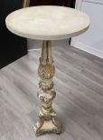 Decorative French Painted Pedestal Stand, distressed painted, linen cover. 37.5" h. Decorative French Painted Pedestal Stand, distressed painted, linen cover. 37.5" h.