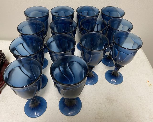14 Blue Fostoria Cups, footed, good condition. 14 Blue Fostoria Cups, footed, good condition.