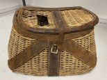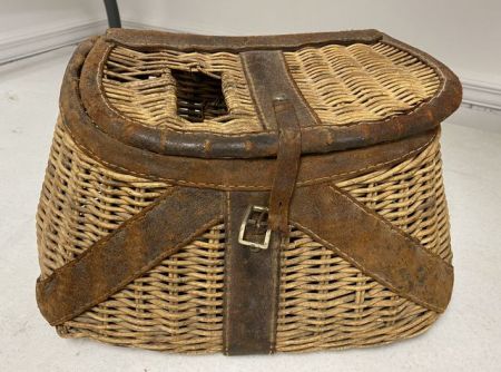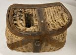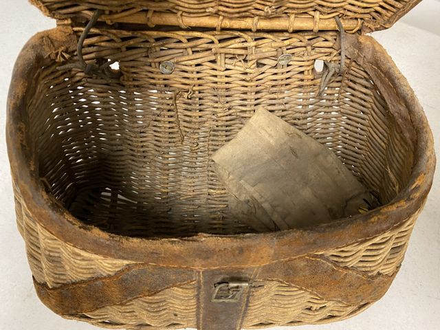 Vintage Mountain Woven Lunch Box, leather strap, lift top, age condition, 9"h., 13"w. Vintage Mountain Woven Lunch Box, leather strap, lift top, age condition, 9"h., 13"w.