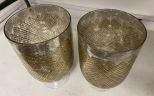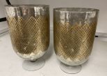 Two Large Glass Candle Holders, silvered color. 14" h., 8.5" w. Two Large Glass Candle Holders, silvered color. 14" h., 8.5" w.