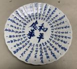 Modern Oriental Porcelain plate, blue and white, marked. 1" h., 12" w. Modern Oriental Porcelain plate, blue and white, marked. 1" h., 12" w.