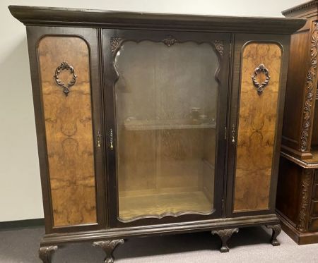 French Style Three Door Armoire, large glass center door, two side door, missing shelves, light wear, break down for travel, 78"h., 78"w., 24"d. French Style Three Door Armoire, large glass center door, two side door, missing shelves, light wear, break down for travel, 78"h., 78"w., 24"d.