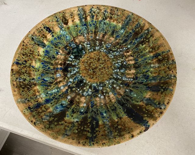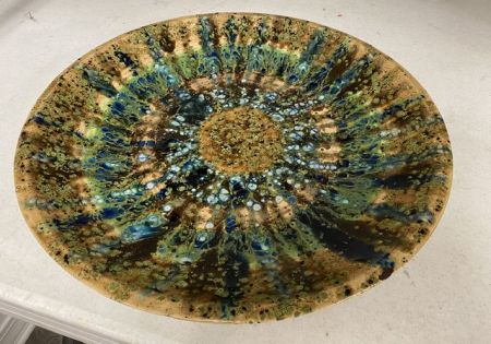 The Collin Collection 2001 Porcelain Charger, hand painted, hand made. 2.5" h., 18.5" w. The Collin Collection 2001 Porcelain Charger, hand painted, hand made. 2.5" h., 18.5" w.