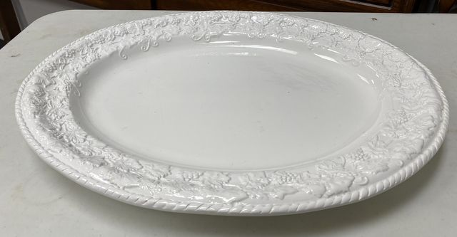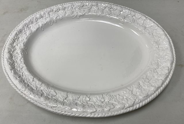 Italy White Porcelain Platter, grapevine border, good condition. 20" x 16.5" Italy White Porcelain Platter, grapevine border, good condition. 20" x 16.5"