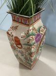 Modern Oriental Ceramic Planter Vase, floral design, with artificial plants. 16.5" h., 7" w. Modern Oriental Ceramic Planter Vase, floral design, with artificial plants. 16.5" h., 7" w.