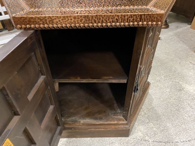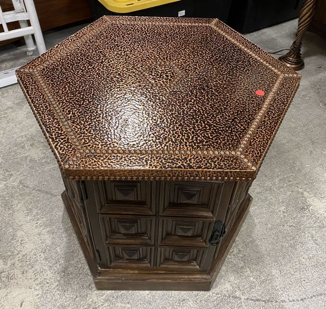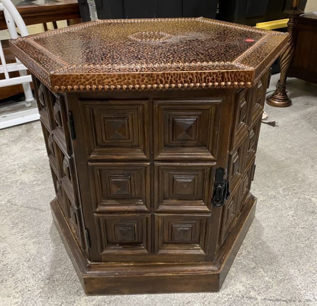 1970's Mid Century Octagon Light Table, tin top, double door, light wear. 22" h., 26.5" w., 23" d. 1970's Mid Century Octagon Light Table, tin top, double door, light wear. 22" h., 26.5" w., 23" d.