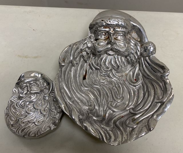 504 Two Christmas Santa Claus Metal Trays