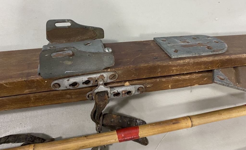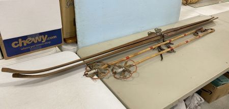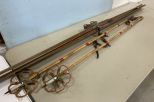 Antique Snow Skies and Poles, wood, age wear, hand crafted, 85" Antique Snow Skies and Poles, wood, age wear, hand crafted, 85"