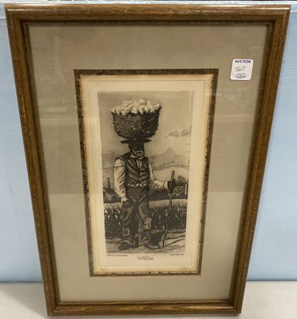 Phillip Sage Signed "Willie" Print, numbered 73/250, printed by Aiken Walker, matted, glass, frame is 18"h., 12"w. Phillip Sage Signed "Willie" Print, numbered 73/250, printed by Aiken Walker, matted, glass, frame is 18"h., 12"w.
