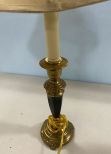 Modern Brass Candle Stick Style Lamp, with shade, 31"h. Modern Brass Candle Stick Style Lamp, with shade, 31"h.