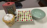 Ceramic glazed vase, porcelain covered jar, square plate, ceramic bowl, 8" Ceramic glazed vase, porcelain covered jar, square plate, ceramic bowl, 8"