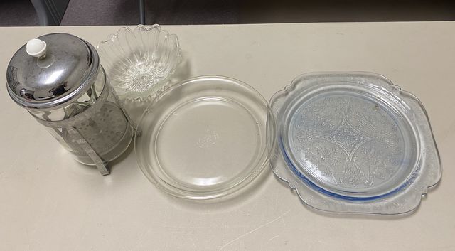 Blue Depression Plate, Dispenser, Plate, and Bowl Blue Depression Plate, Dispenser, Plate, and Bowl