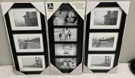 Three new picture frames, 3 and 4 slot frames, 4 x 6 frames. Three new picture frames, 3 and 4 slot frames, 4 x 6 frames.