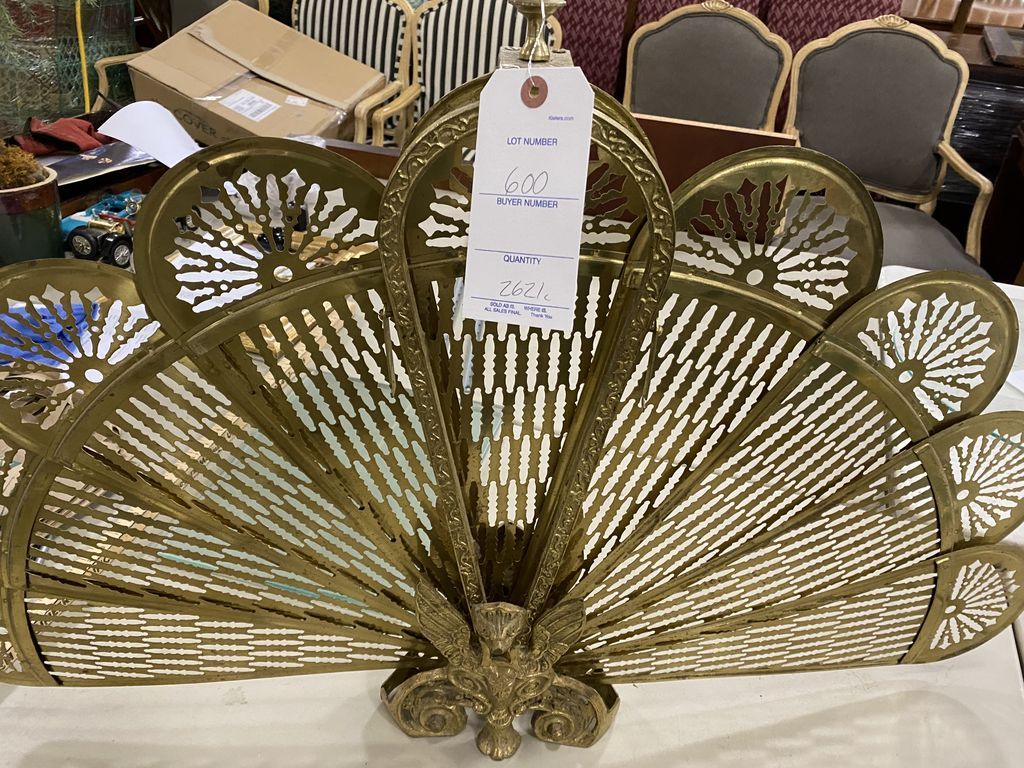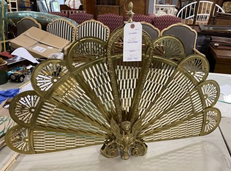 Vintage Brass Fireplace Peacock Screen, working order, light tarnish, 25"h., 38"w. Vintage Brass Fireplace Peacock Screen, working order, light tarnish, 25"h., 38"w.