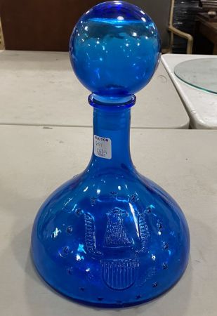 Freedom For Our Ship Blue Decanter, good condition, included stopper, 12"h. Freedom For Our Ship Blue Decanter, good condition, included stopper, 12"h.