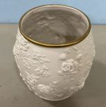Laura Ashley Porcelain Vase, white embossed roses, 10"h. Laura Ashley Porcelain Vase, white embossed roses, 10"h.