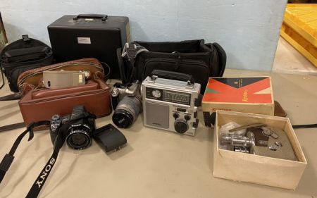 Collection of Modern, Vintage, and Antique Cameras, with cases, projector. Collection of Modern, Vintage, and Antique Cameras, with cases, projector.