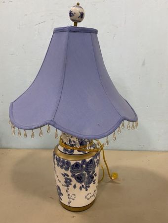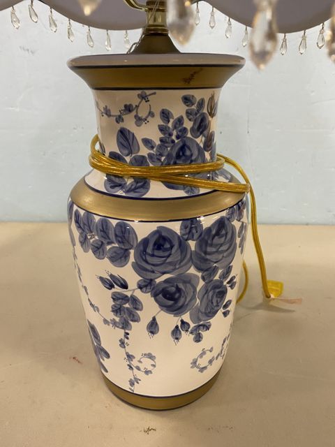 Laura Ashley Ceramic Vase Lamp, rose painted design, with shade, 25"h. Laura Ashley Ceramic Vase Lamp, rose painted design, with shade, 25"h.