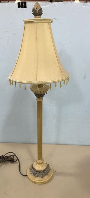 French Style Candle Stick Lamp, metal, with shade, 32"h. French Style Candle Stick Lamp, metal, with shade, 32"h.