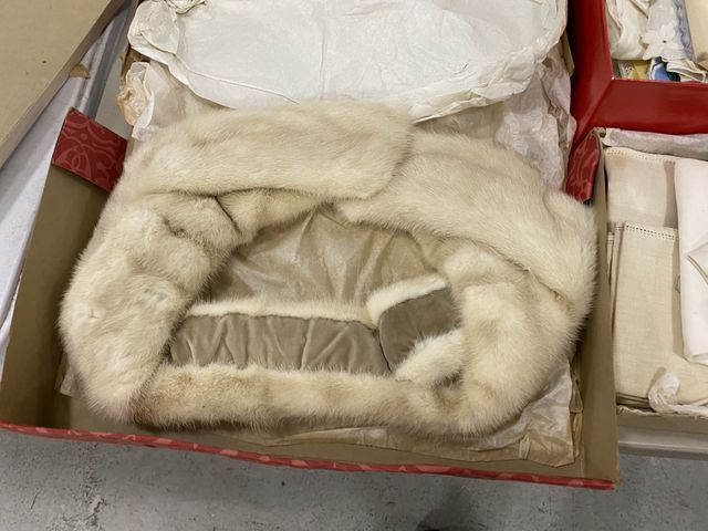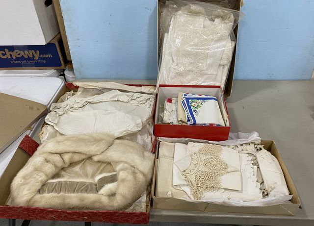 Group of Linens, Napkins, and Fur Stole. Group of Linens, Napkins, and Fur Stole.
