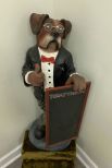 Dog Advertisement Stand "Todays Special", plastic dog statue holding sign, on stair stand, 46"h. Dog Advertisement Stand "Todays Special", plastic dog statue holding sign, on stair stand, 46"h.