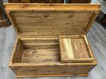 Nice Dove Tailed Cedar Chest, lift top, inner shelf, good condition, 18"h., 40"w., 18"d. Nice Dove Tailed Cedar Chest, lift top, inner shelf, good condition, 18"h., 40"w., 18"d.
