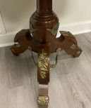 French Empire Pedestal Marble Top Table, brass ormolu, walnut, good condition, 28"h., 24"dia. French Empire Pedestal Marble Top Table, brass ormolu, walnut, good condition, 28"h., 24"dia.