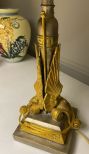 Decorative Gold Gilt Table Lamp, with finial and shade, 32"h. Decorative Gold Gilt Table Lamp, with finial and shade, 32"h.
