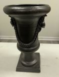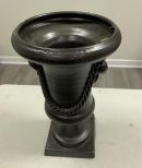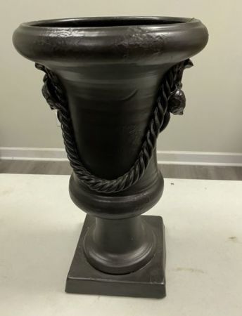 Ceramic Urn Planter, painted black with tassel design, good condition, 21"h. Ceramic Urn Planter, painted black with tassel design, good condition, 21"h.