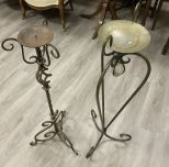 Two Wrought Iron Candle Holders, bent metal, two different styles, 38"h. Two Wrought Iron Candle Holders, bent metal, two different styles, 38"h.