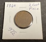 1864 2 Cent Piece, good condition, in paper case. 1864 2 Cent Piece, good condition, in paper case.