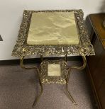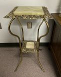 Ornate Art Nouveau Brass Lamp Table, two tier, curved legs, ornate designs. Ornate Art Nouveau Brass Lamp Table, two tier, curved legs, ornate designs.