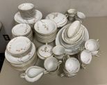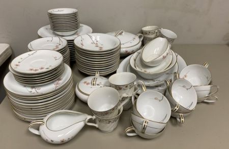 Noritake Porcelain China Set, made in Japan, 12 dinner plates, salads, bread & Butter, gravy, saucers, cups. 12 place settings. Noritake Porcelain China Set, made in Japan, 12 dinner plates, salads, bread & Butter, gravy, saucers, cups. 12 place settings.