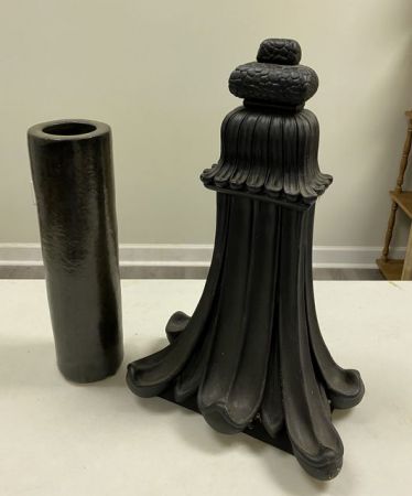 Stoneware Tower Vase 14"h. and Resin Black Wall Shelf 19"h. Stoneware Tower Vase 14"h. and Resin Black Wall Shelf 19"h.