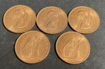 Five 1967 British Penny BU Bronze Coins Five 1967 British Penny BU Bronze Coins