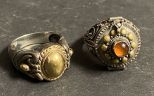 Two Vintage Sterling rings, one with hidden compartment. Two Vintage Sterling rings, one with hidden compartment.