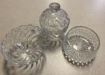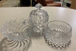 404 Three Large Crystal Candy Dish, and Two Center Piece Bowls