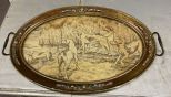Vintage Hunt Dog Tapestry Tray, wood frame, glassed, brass handled, has moisture damage on top. 19"w. Vintage Hunt Dog Tapestry Tray, wood frame, glassed, brass handled, has moisture damage on top. 19"w.