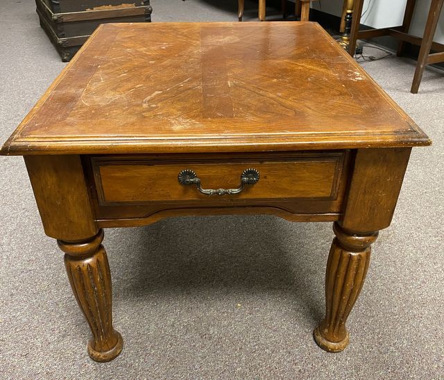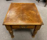 Cherry Modern Side Table, early American style, single drawer, has finish wear, 20"h., 28"w. Cherry Modern Side Table, early American style, single drawer, has finish wear, 20"h., 28"w.