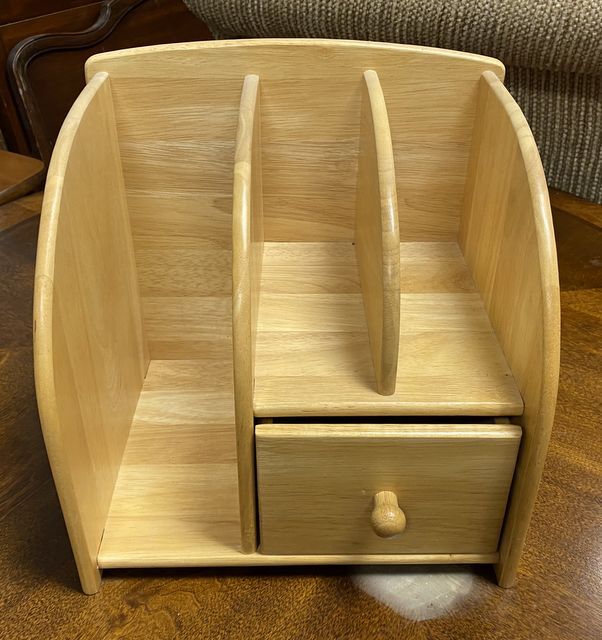 Modern Letter Organizer, three slot, with drawer, 12"h. Modern Letter Organizer, three slot, with drawer, 12"h.