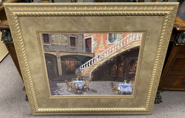 Crown Fine Arts Co. Framed Courtyard Print, matted, framed, 37"h., 43"w. Crown Fine Arts Co. Framed Courtyard Print, matted, framed, 37"h., 43"w.