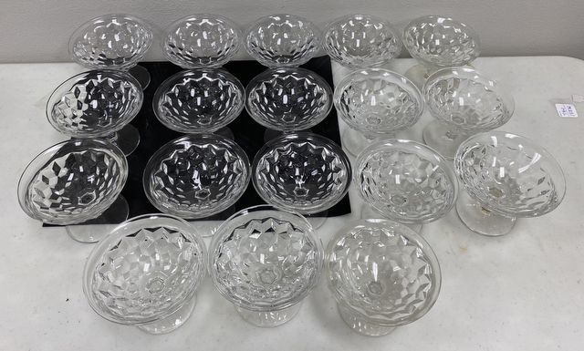 18 Fostoria American Sherbets, American Clear, good condition, 3". 18 Fostoria American Sherbets, American Clear, good condition, 3".