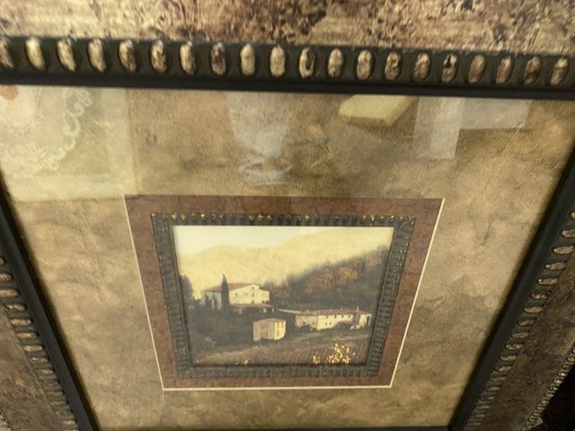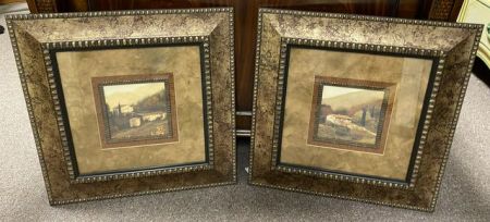 Pair of European Home Place Prints, framed, matted, glassed, 21"h., 20"w. Pair of European Home Place Prints, framed, matted, glassed, 21"h., 20"w.