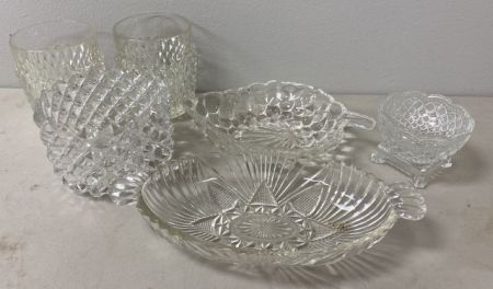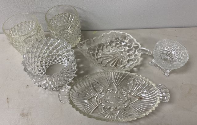 Group of Vintage Pressed Glass Serving Pieces, bowls, dishes, cups. Group of Vintage Pressed Glass Serving Pieces, bowls, dishes, cups.