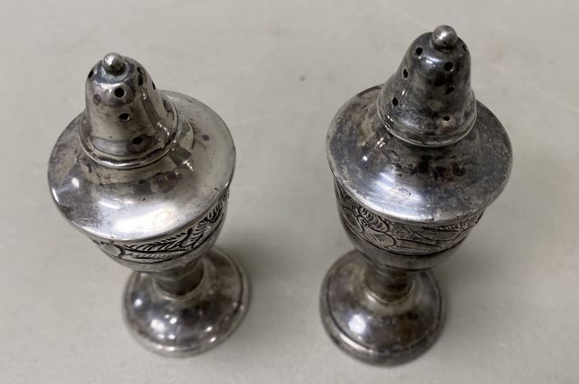 Sterling Salt & Pepper Shakers, Not weighted, 4"h. Sterling Salt & Pepper Shakers, Not weighted, 4"h.